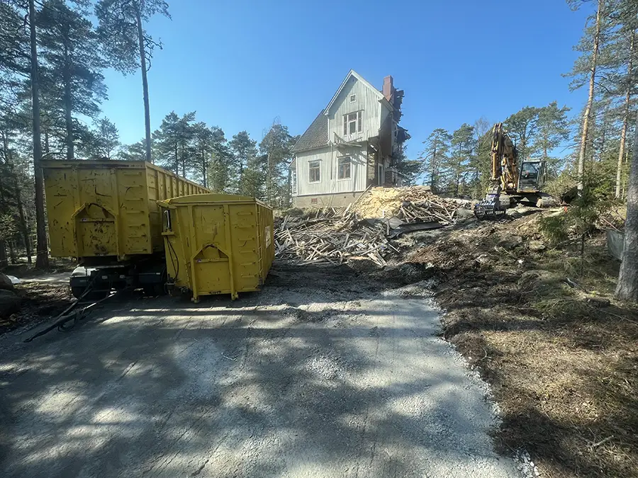 Puramme rakennukset aina vastuullisesti ja pyrimme hyödyntämään mahdollisimman suuren osan purkumateriaalista uusiokäyttöön. Purkutöiden yhteydessä lajittelemme syntyvän jätteen ja toimitamme sen asianmukaisesti kierrätettäväksi. Lopulta jätämme työmaan siistiin kuntoon.